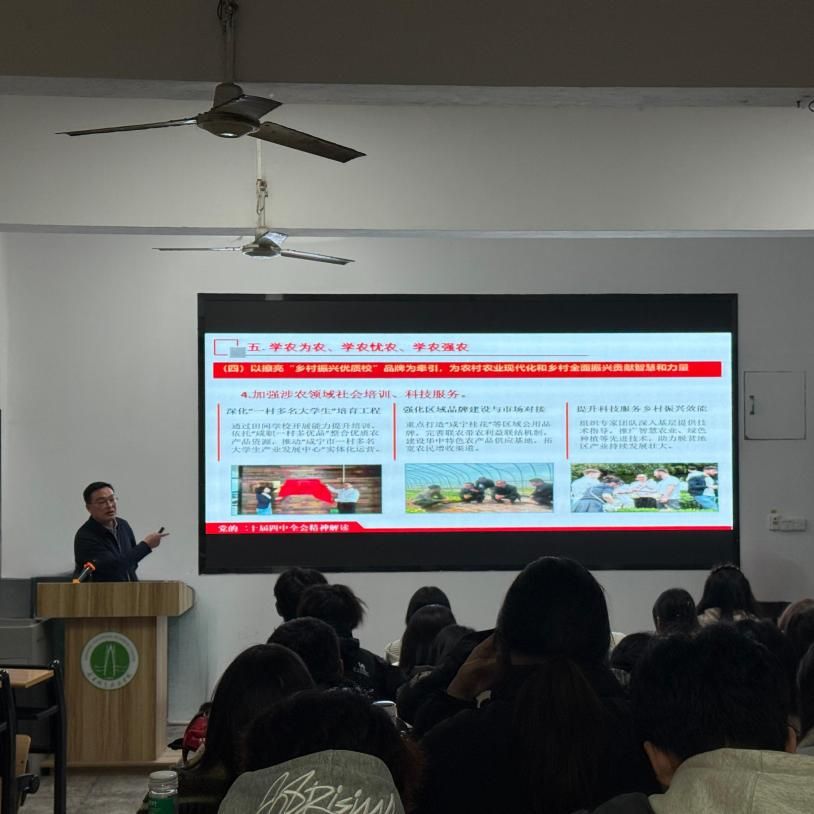 在宣讲中,方高文紧密结合涉农高校的职责使命与威廉希尔足球官网(乡村振兴学院)的专业特色,深入阐述了“学农为农、学农忧农、学农强农”的深刻内涵。他强调,加快农业农村现代化事关中国式现代化全局,是强国建设的根基所在,关乎亿万农民福祉。涉农高校必须自觉将自身发展融入国家战略,为乡村全面振兴和农业现代化提供有力的人才支撑和智力支持。